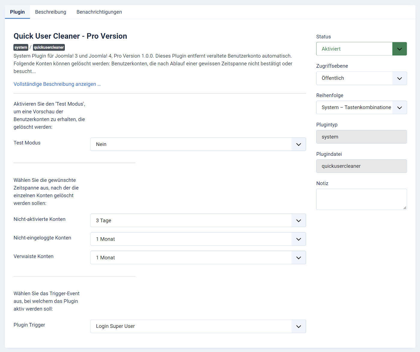 Wenn deine Webseite eine große Anzahl an Benutzerkonten aufweist, von denen viele nicht aktiviert oder seit langer Zeit nicht benutzt worden sind, so hilft dir Quick User Reminder dabei, die Nutzer dieser Konten schnell und einfach zu benachrichtigen. Du stellst mit wenigen Klicks ein, nach welcher Zeitspanne die entsprechenden Accounts eine E-Mail erhalten sollen, und schon beginnt das Plugin für dich zu arbeiten. So musst du nicht alle Benutzerkonten manuell durchsehen und anschreiben.